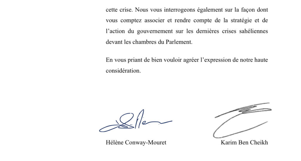 Avec le député de la 9e circonscription des Français de l’étranger, Karim Ben Cheïkh, nous avons écrit un courrier commun à la ministre de l’Europe et des Affaires étrangères, Catherine Colonna, afin de connaître l’avenir des relations diplomatiques entre la France et le Niger, après le putsch militaire survenu en août 2023.