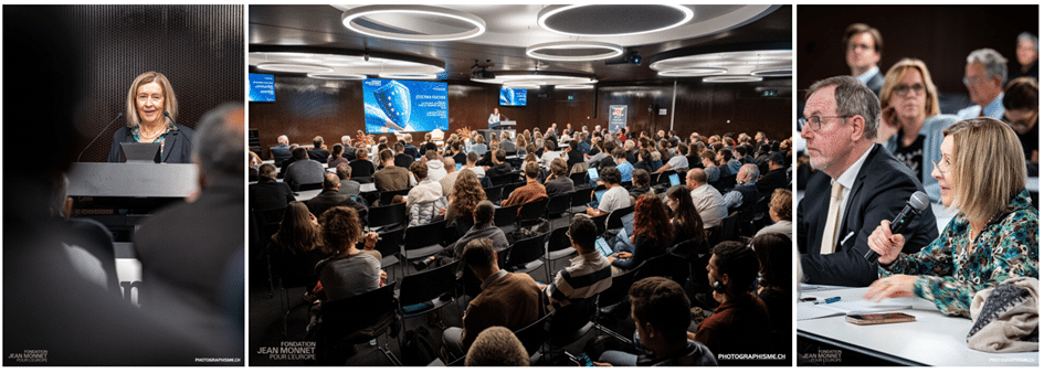J’ai ensuite pris la direction de Lausanne pour participer à une conférence organisée par la Fondation Pierre du Bois et la Fondation Jean Monnet et consacrée à la sécurité européenne dans le désordre mondial. Pour ma part, je suis intervenue lors de la table-ronde « L’Europe, les forces militaires et l’armement » en présence de Raoul Delcorde, ancien ambassadeur de Belgique en Suède, en Pologne et au Canada, Ulrike Franke, chercheuse à l’European Council on Foreign Relations (ECFR), Katja Gentinetta, philosophe politique et économique suisse, et Georg Häsler, journaliste suisse spécialisé sur les enjeux de défense et de sécurité. D’autres tables-rondes ont permis de débattre des menaces hybrides, du devenir de l’architecture de sécurité européenne ou encore de la diplomatie de l’UE dans un monde scindé en blocs.